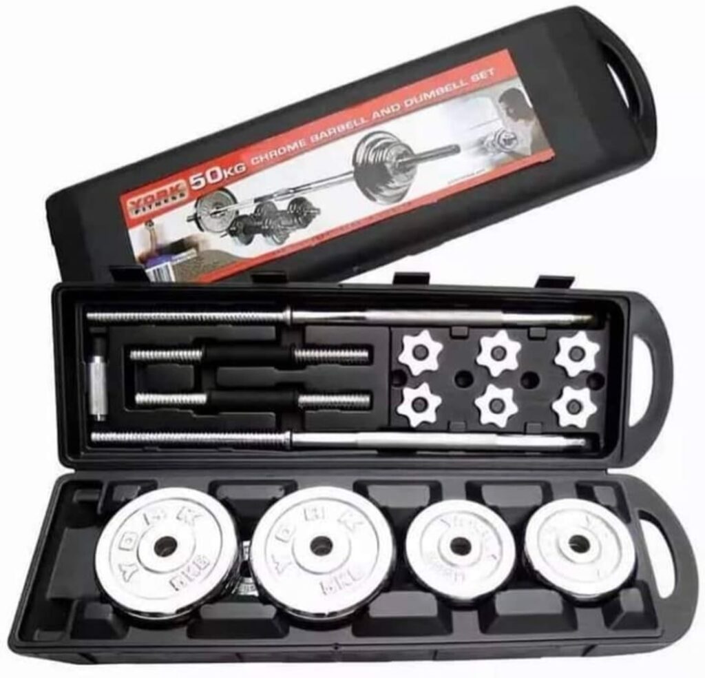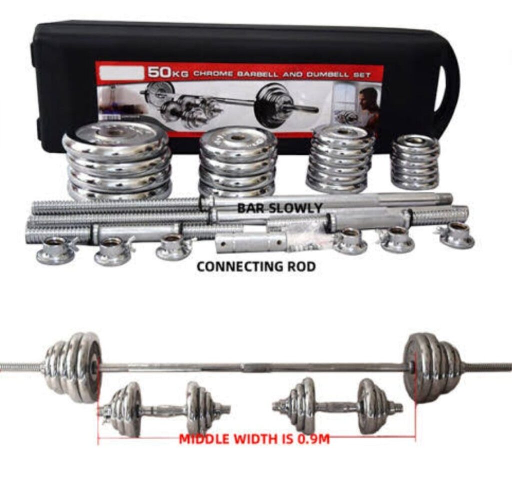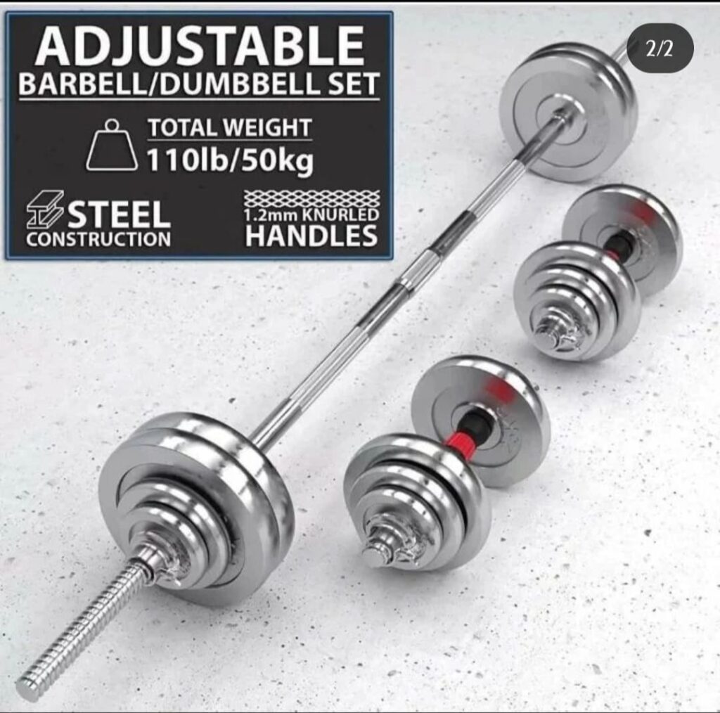 50KG ADJUSTABLE DUMBBELL AND BARBELL SET FOR BIGGER ARMS, CHEST AND GENERAL BODY FITNESS.